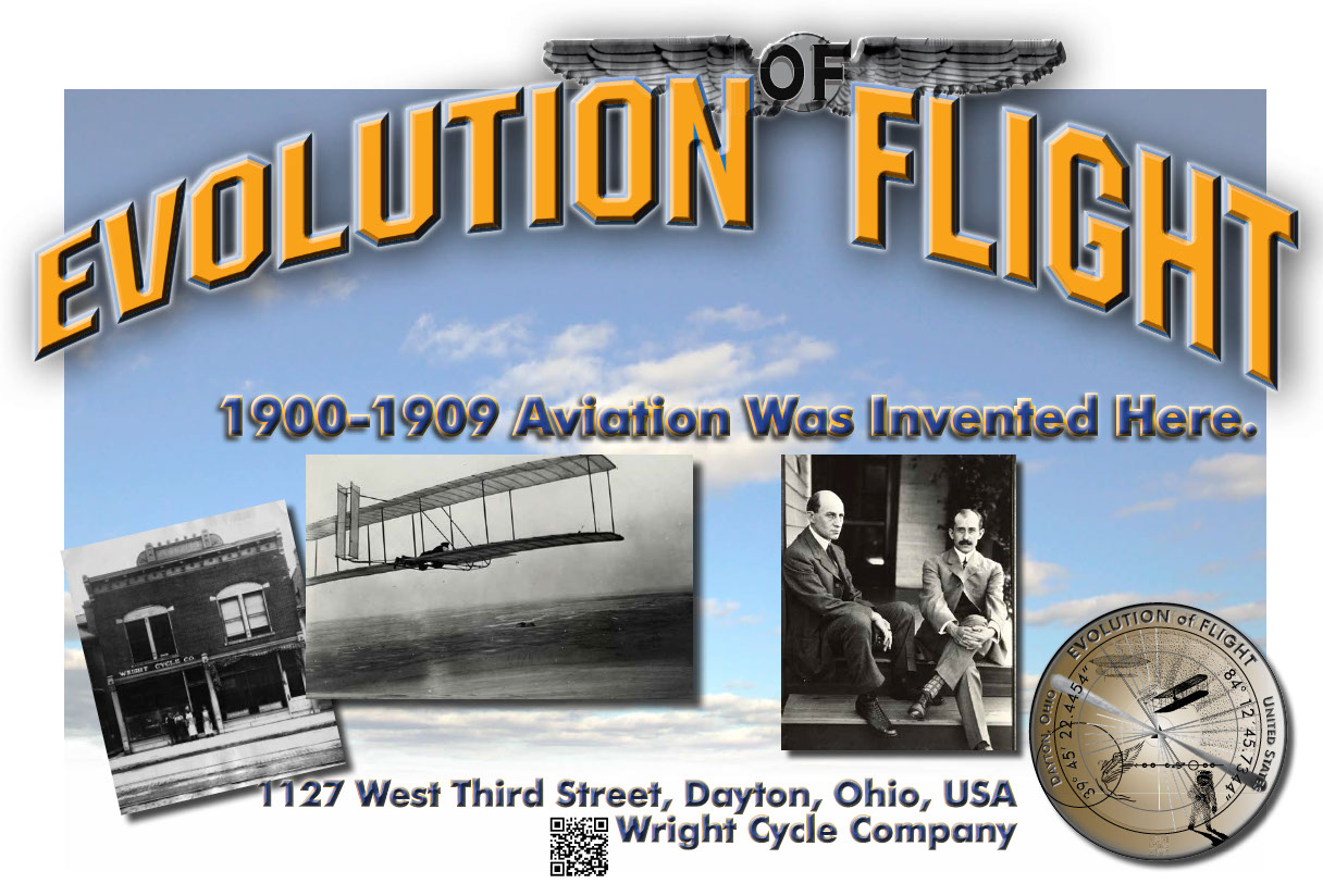 From 1900 to 1909, the Wright Brothers worked in their bicycle shop and invented the aerial age.